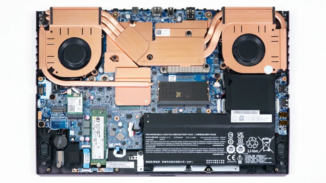 上图是七彩虹 将星X15 AT的拆机实拍图,双风扇六热管的组合。