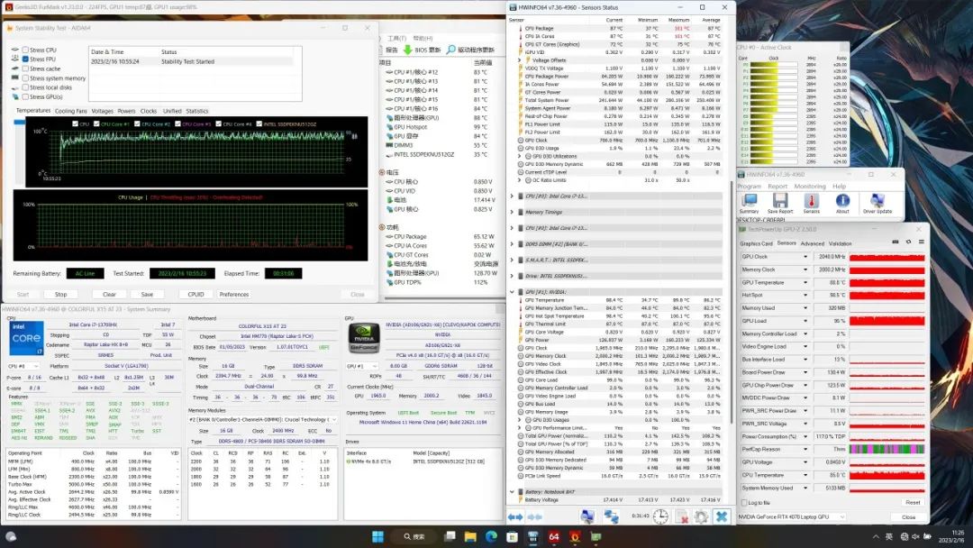 显卡撞到了温度墙,功耗约127W,温度88.4℃,频率2040MHz。
