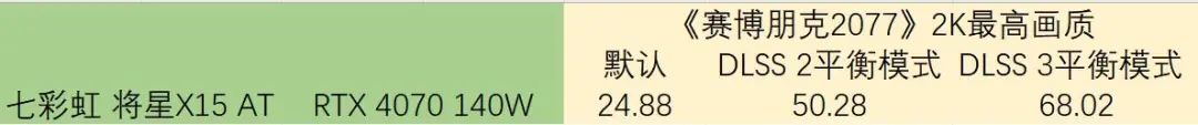 在DLSS 3的加持下,搭载RTX 4070的七彩虹将星 X15 AT已经可以以60帧以上的帧数畅游夜之城了;