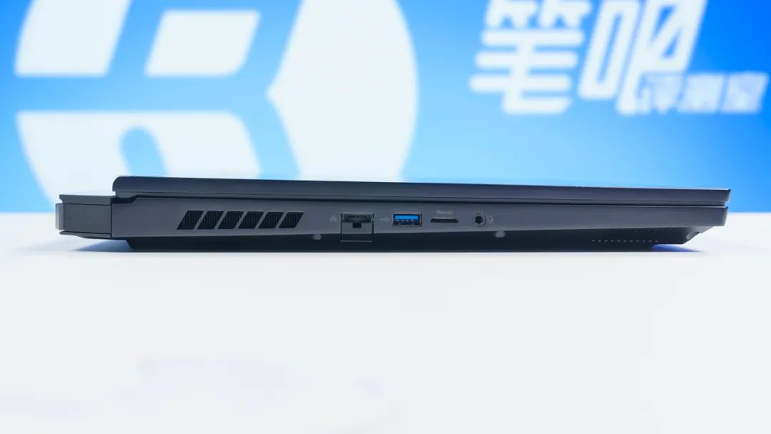 接口方面,机身左侧依次为RJ45网口、USB-A 5Gbps、MicroSD卡槽、3.5mm耳麦接口;