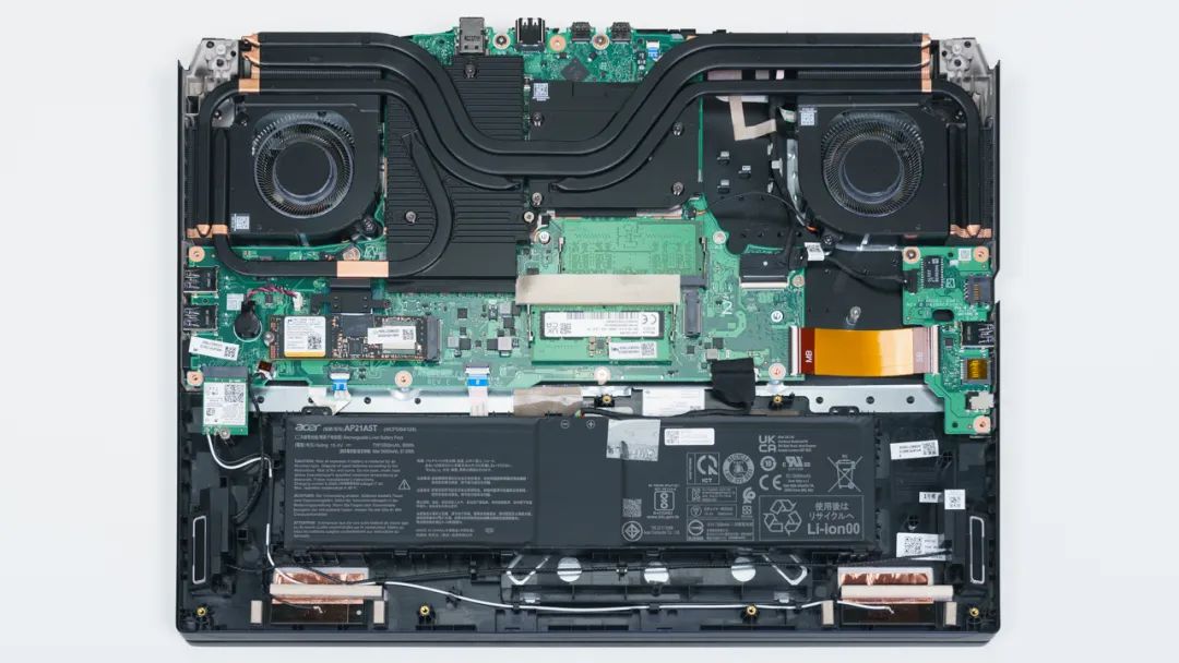上图是宏碁 掠夺者 战斧18的拆机实拍图,双风扇五热管的组合。
