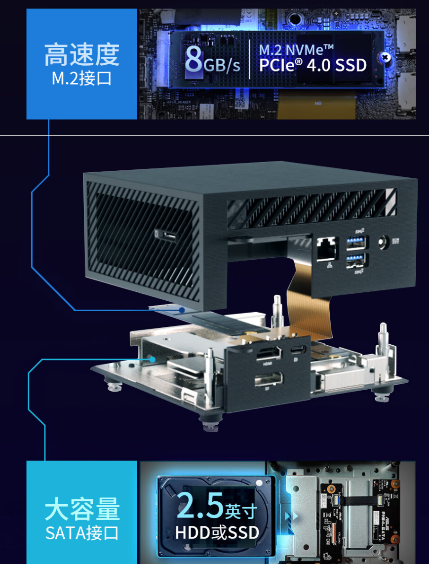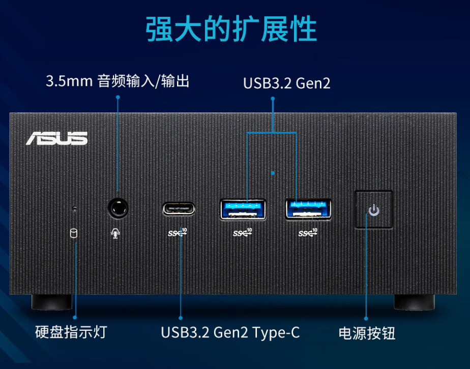 华硕破晓 X mini 迷你主机搭载英特尔酷睿 i7-13700H 处理器(IT之家备注:14 核 20 线程,睿频 5.0GHz,45W),默认 16GB DDR5 4800 内存(最高 64GB),以及 512GB SSD 存储,拥有 M.2 和 SATA 接口。