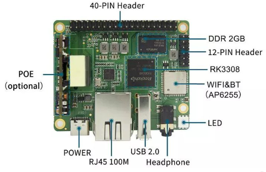 香蕉派 BPI-P2 Pro 搭载了瑞芯微 RK3308 处理器,该处理器是专为物联网应用设计的 1.3 GHz 四核 ARM Cortex-A35 处理器。