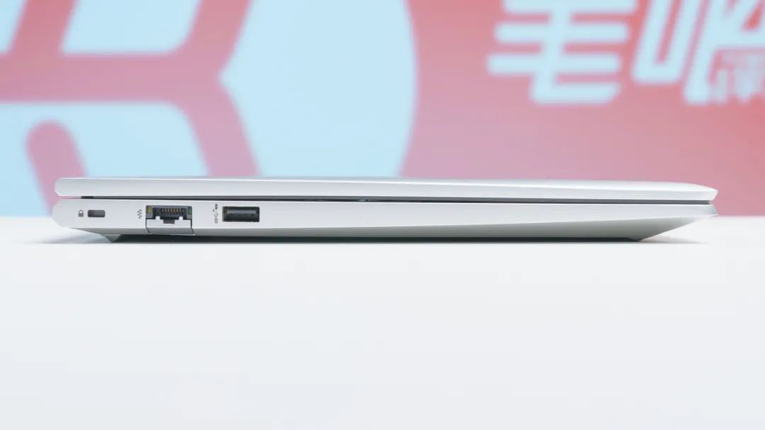 接口方面,机身左侧依次为防盗锁口、RJ45网口、USB-A 5Gbps接口;