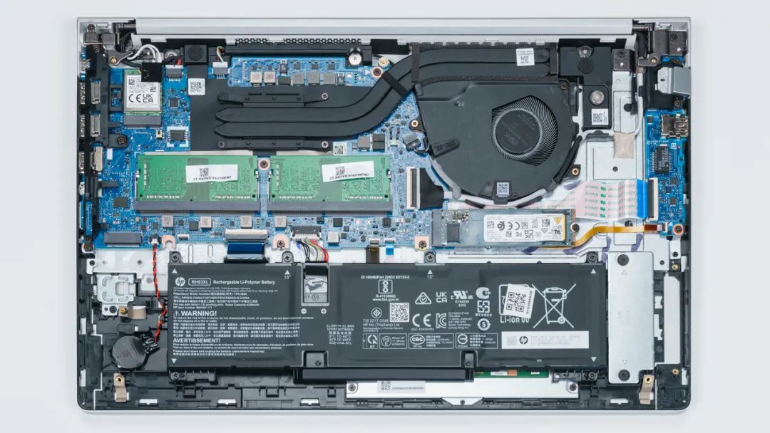 上图是惠普 战66六代 锐龙版的拆机实拍图,单风扇双热管的组合。