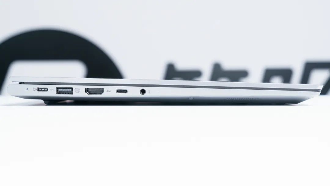 接口方面,机身左侧有两个全功能Type-C、USB3.2 Gen1 Type-A、HDMI2.0、3.5mm音频接口;