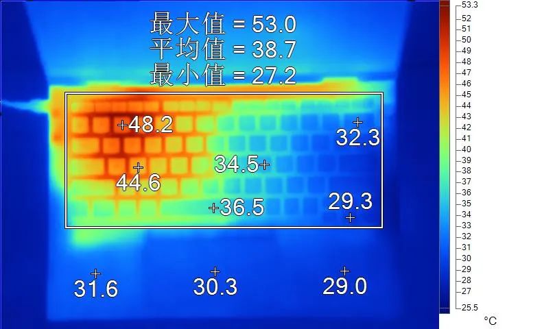 3,高负载下,键盘表面温度较高