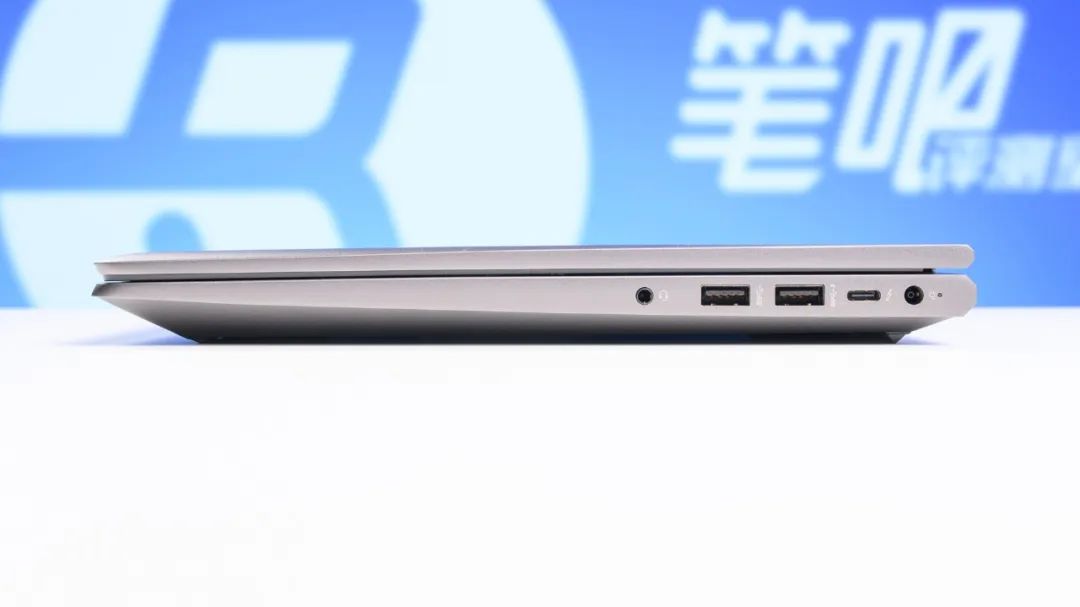 机身右侧依次为电源接口、雷电4(支持PD充电与视频输出)、两个USB-A 5Gbps与3.5mm音频接口。