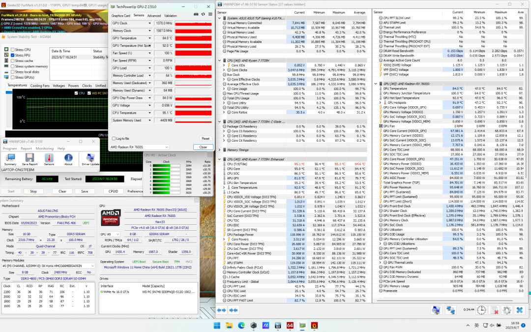 华硕 天选4R最大的特点是显卡,Radeon RX 7600S是最新的RDNA 3架构显卡,我们这次抢先体验了一把。