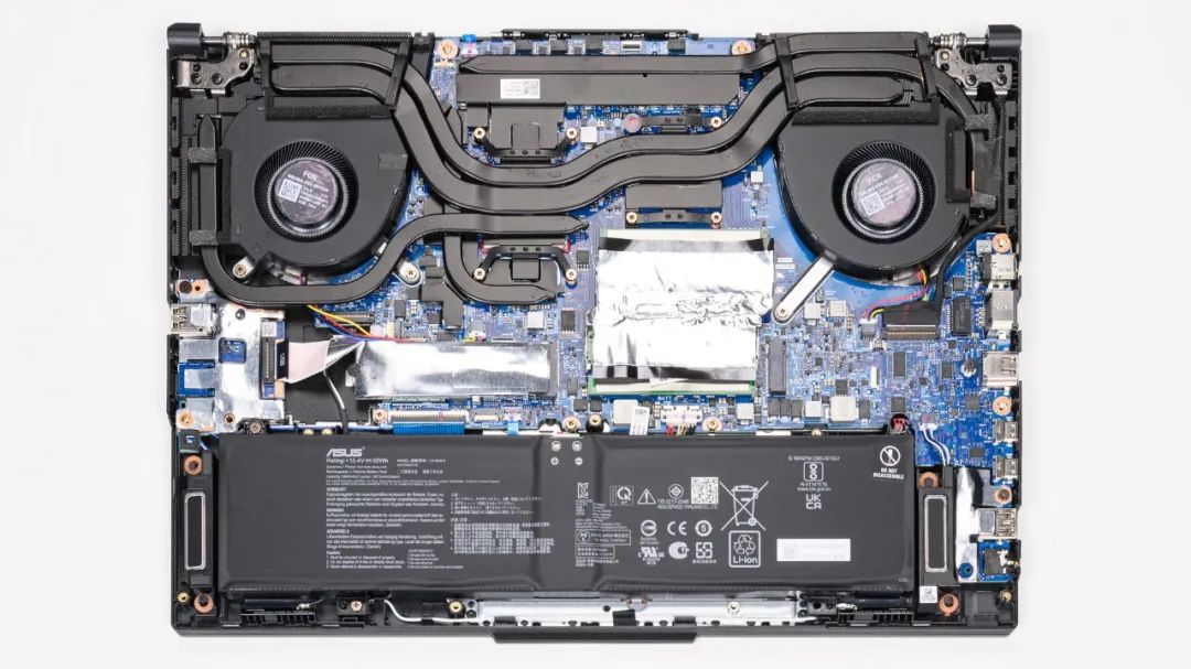 上图是华硕 天选4R的拆机实拍图,5热管双风扇的组合,和其他版本规格一致。