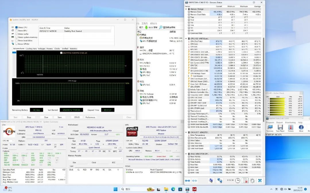 测试机的固态硬盘容量为1TB,型号为金士顿OM8SEP4,支持PCIe4.0×4和NVMe,机器还提供了一个M.2 2280硬盘位,如有需要可以自行加装。
