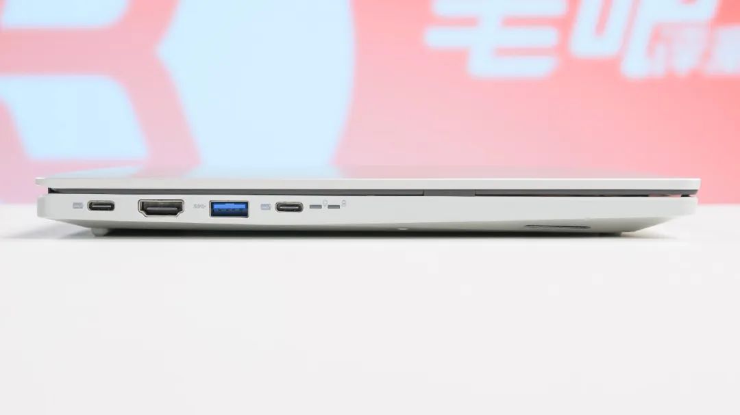 接口方面,机身左侧依次为USB-C 10Gbps(支持PD充电与视频输出)、HDMI2.0、USB-A 5Gbps、USB-C 10Gbps(支持PD充电与视频输出);