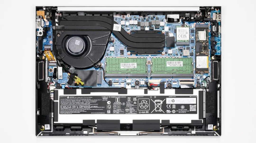 上图是惠普 战X锐龙版的拆机实拍图,单风扇双热管的组合。
