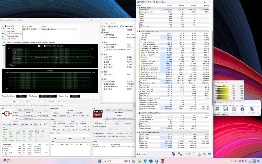 惠普 战X 14 锐龙版采用了HS标压CPU,性能调度策略比酷睿版的P28处理器激进很多,这不仅体现在烤机测试上,也体现在日常运行软件的时候,