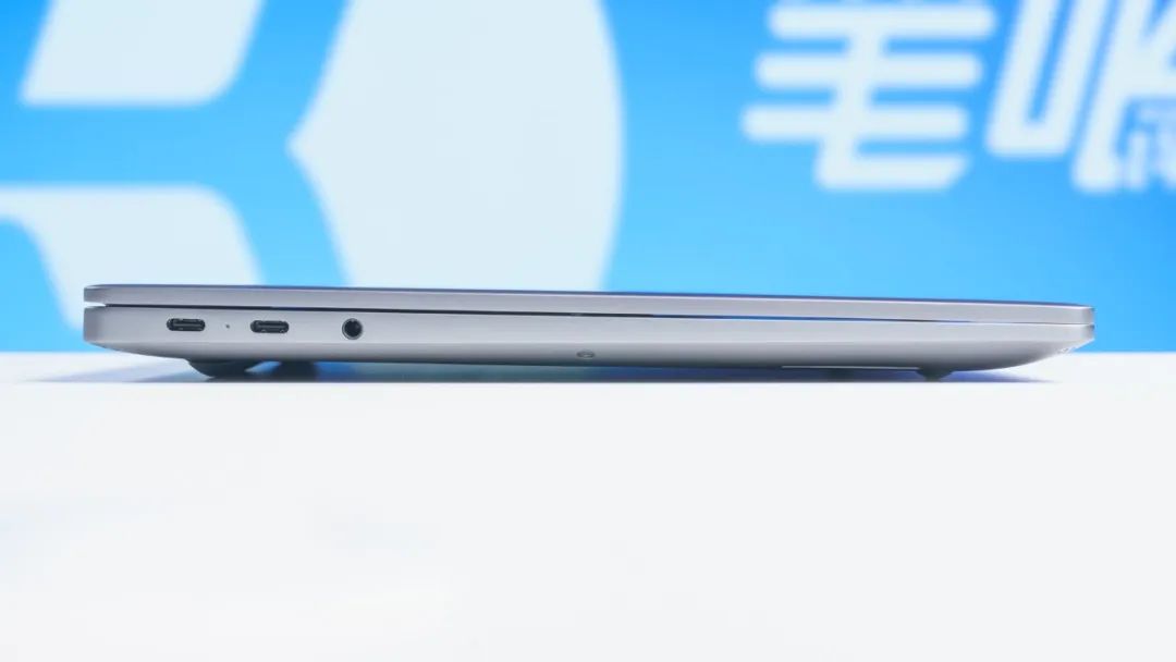 接口方面,机身左侧有两个USB-C 10Gbps(支持65W PD充电和DP1.4视频输出)、3.5mm音频接口;