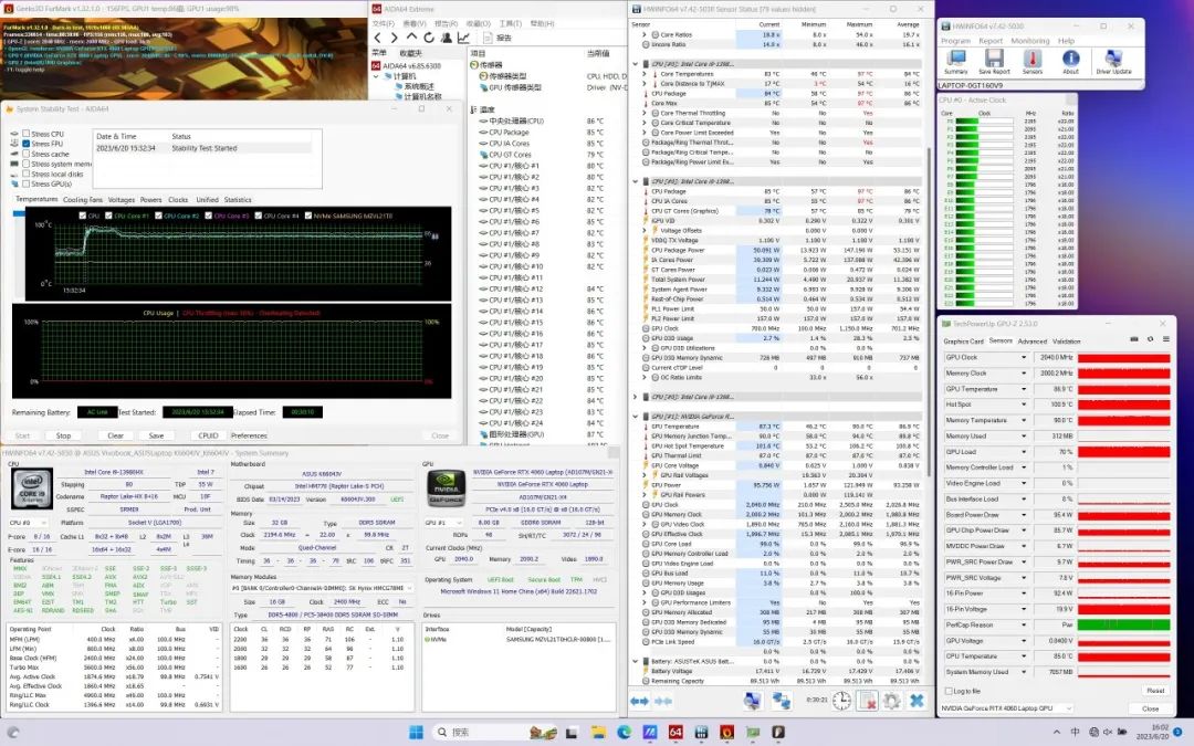 总的来说,无畏Pro16 2023旗舰版的散热表现不错。由于采用了键盘进风设计,所以它能用风扇噪音换来超低的表面温度。