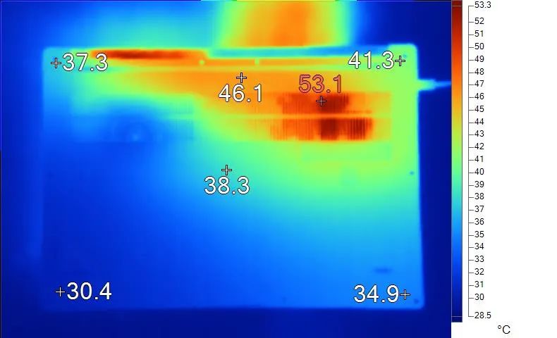 表面温度如上图所示,键盘键帽最高46℃出现在键盘左上角区域,WASD键为44.5℃,方向键32.0℃。左腕托温度为35.3℃,背面中心点38.3℃。总的来说,荣耀MagicBook X 16的散热表现中规中矩,性能释放能做到45W,同时核心温度也比较高,所以也不用担心他CPU性能不达标了,日常影音办公毫无压力,运行PS、CAD等基础工作软件也没问题。 【猪王的良心结语】
