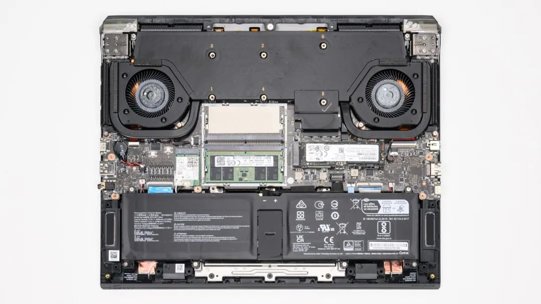 内存为单条16GB DDR5 5600MHz,由于H45 CPU限制在5200MHz下运行,机器有两个内存插槽,如有需求可加装内存。