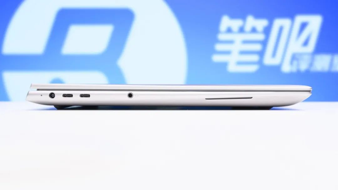 接口方面,机身左侧有两个雷电4(支持PD充电和DP视频输出)和3.5mm音频接口;