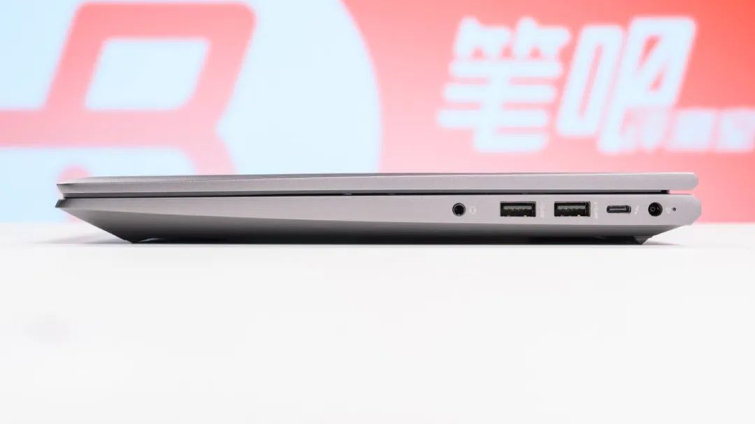 机身右侧有两个USB-A 10Gbps、雷电4(支持PD充电和DP视频输出)、3.5mm音频接口。