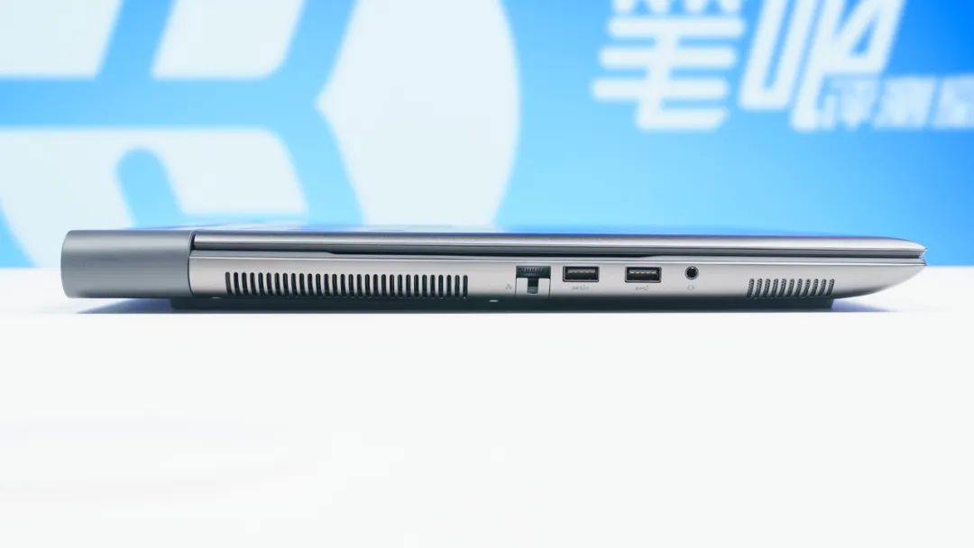 接口方面,机身左侧依次为RJ45网口、两个USB-A 10Gbps和3.5mm音频接口;