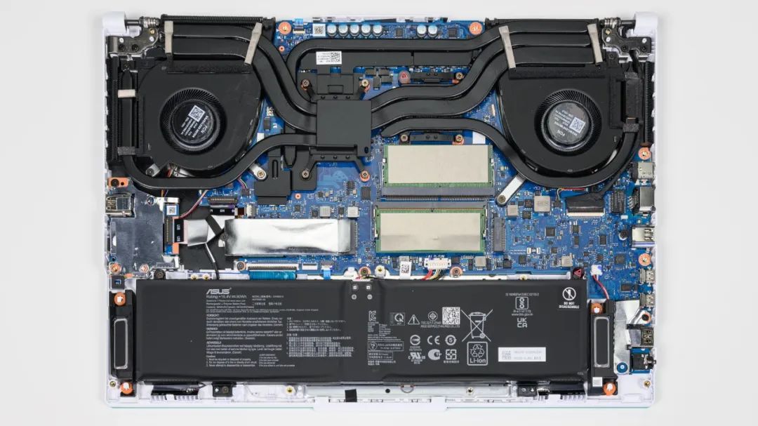 上图是华硕 天选4 锐龙版的拆机实拍图,5热管双风扇的组合,和其他版本规格一致。