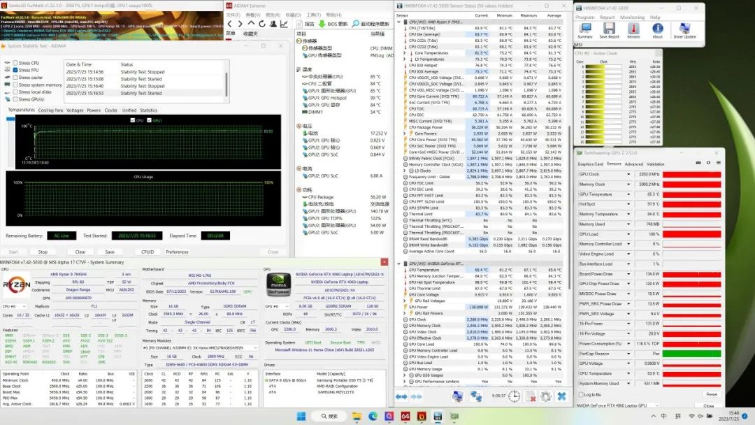 总的来说,微星 雷影17的CPU性能释放偏保守,显卡发挥正常,核心温度控制得都不错,表面温度中规中矩,风扇噪音较大。