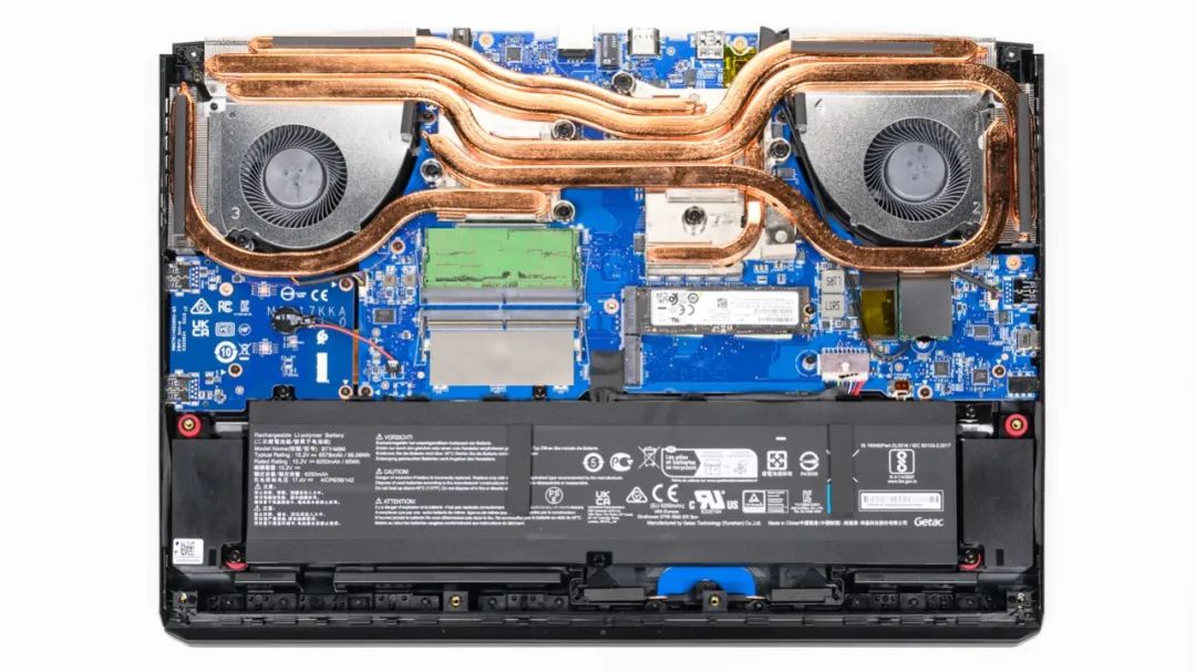 上图是微星 雷影17的拆机实拍图,六热管双风扇的组合。