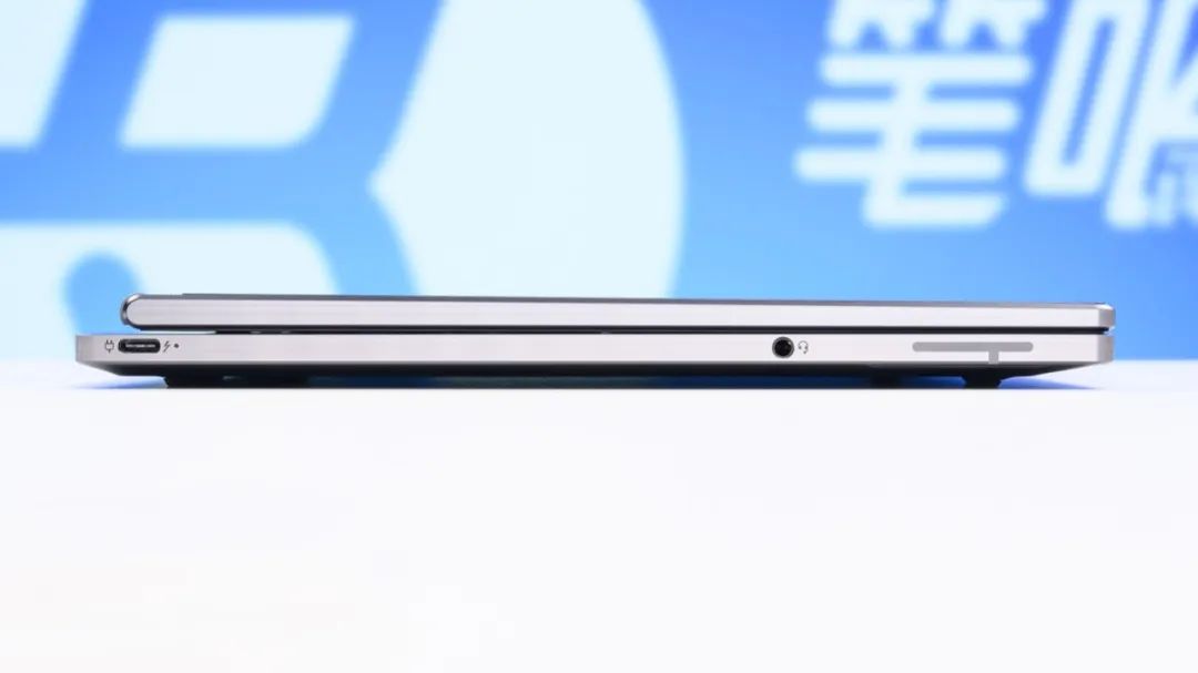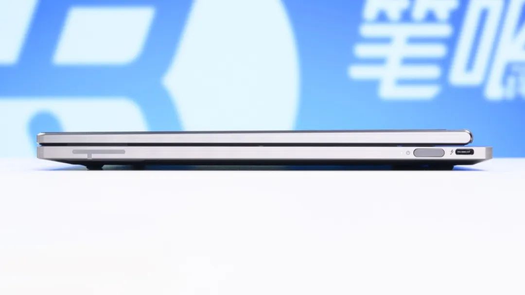 接口方面,这台电脑左侧有一个雷电4接口(支持PD充电和DP视频输出)和3.5mm音频接口,右侧有一个雷电4接口(支持PD充电和DP视频输出)。