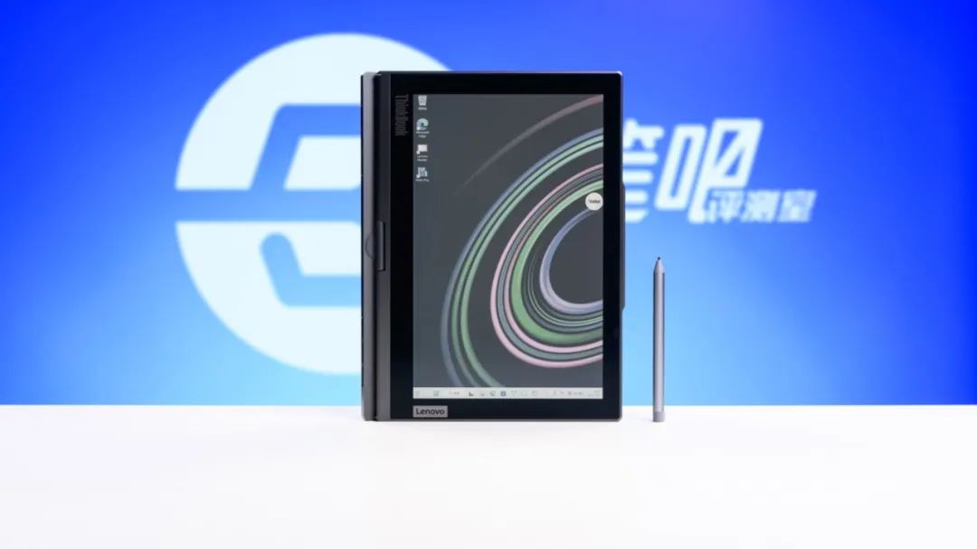 ThinkBook Plus Twist最大的特点就在于“twist”,它的双屏是比较少见的“背对背”形式,同时只有一块可以面对使用者,因此它的切换方式为“扭转”到背后,使用体验非常新颖。而其中一块是OLED材质,另一块为彩色墨水屏。