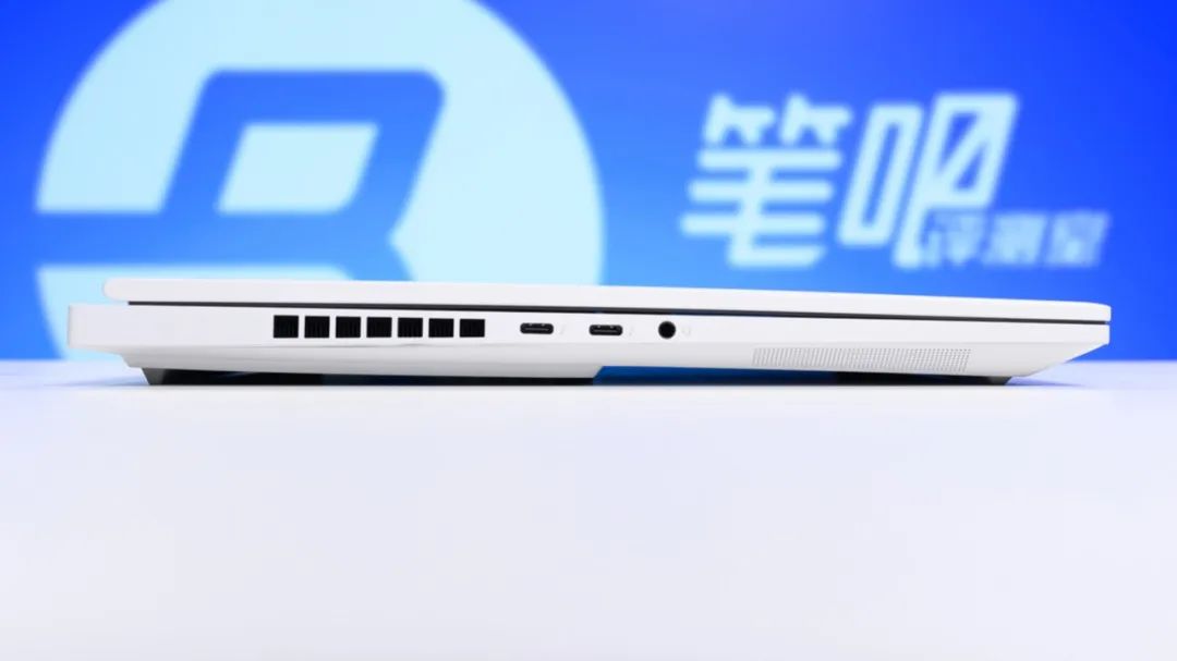 接口方面,机身左侧有两个雷电4接口(均支持支持100W PD充电,以及DP独显输出);