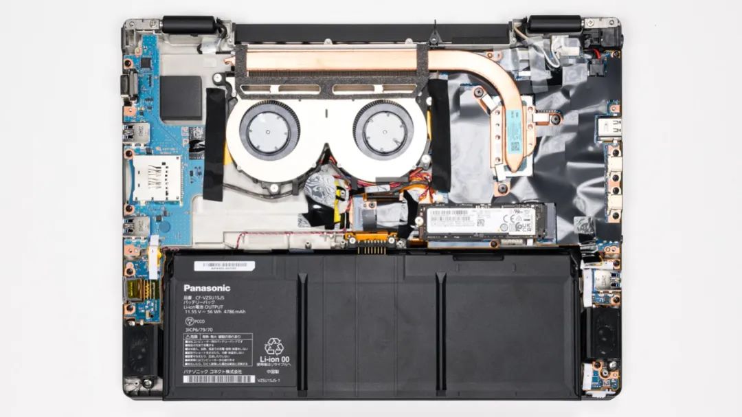 上图是松下 CF-FV4的拆机实拍图,双风扇单热管的组合。