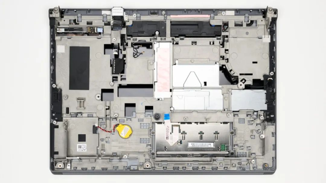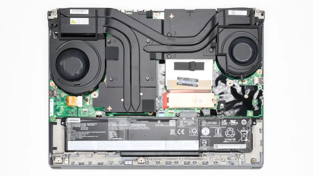 上图是ThinkPad P16 Gen2的拆机实拍图,四热管双风扇的组合,热管很粗,均热板也很大。防滚架可以强化电脑结构,增加耐用性。
