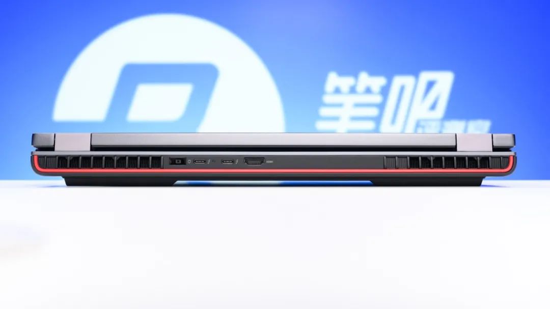 机身后侧依次为电源接口、两个雷电4(支持视频输出不支持PD充电)、HDMI2.1接口。