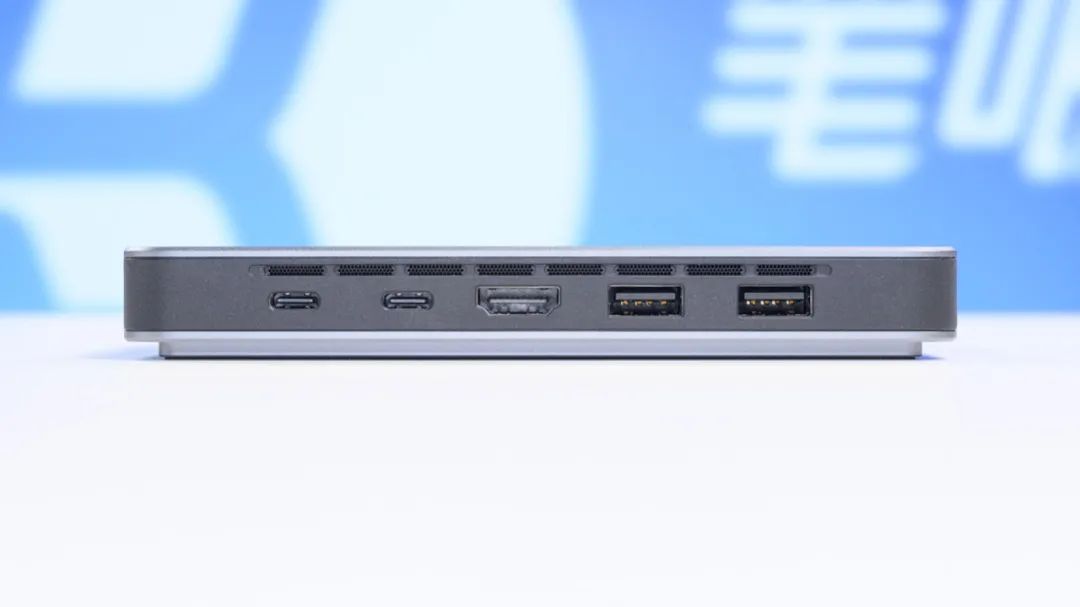 接口方面,这台电脑所有接口均在后侧,有两个USB-C(均支持DP输出和PD充电,其中左侧为2.0速率,右侧为10Gbps速率),两个UBS-A 10Gbps,一个HDMI2.0接口,数量较少。