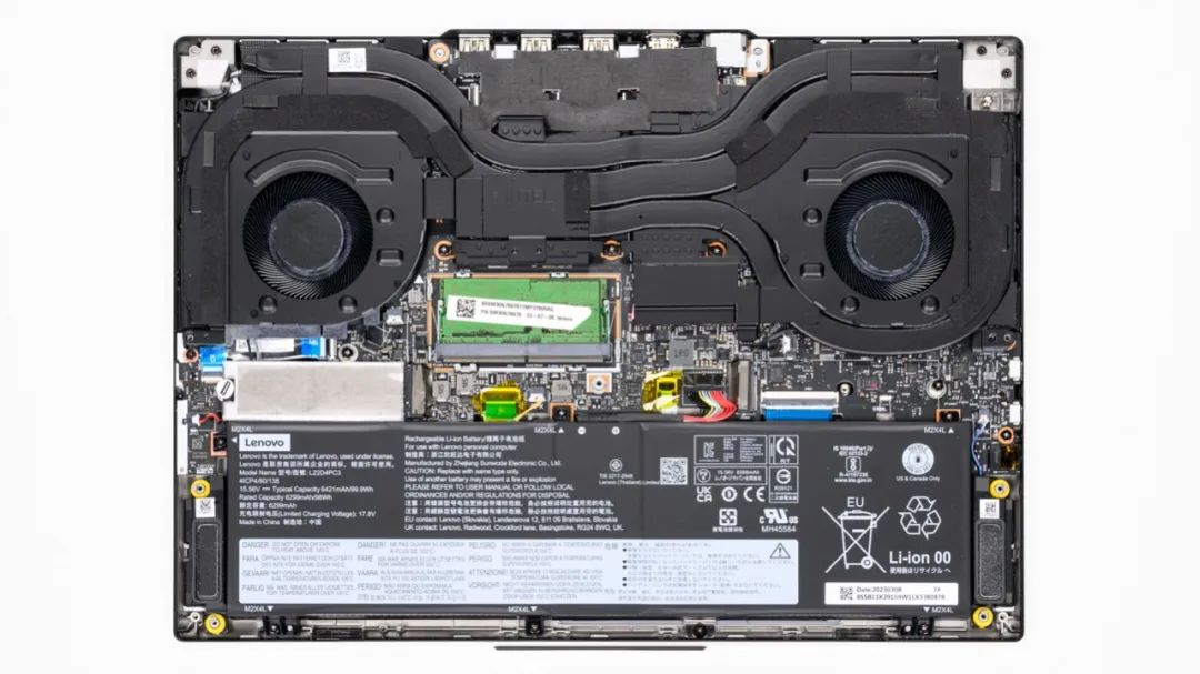 上图是联想 拯救者 Y9000X 2023的拆机实拍图,4热管双风扇的组合,其中一根隐藏在显卡底座下方。