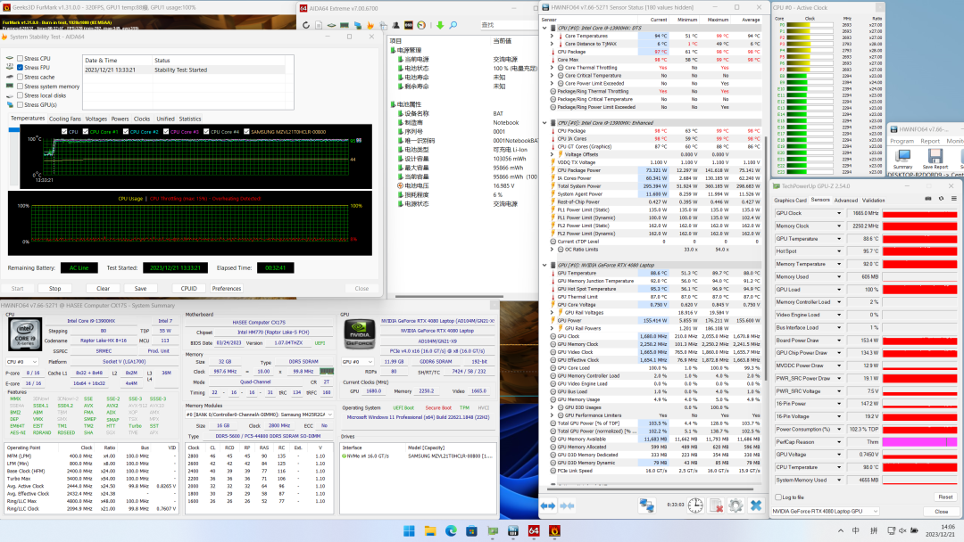 这台电脑的整体散热水平对于这个定位的产品而言并不算好,并且进风瓶颈较大,相比X170时代的传统厚砖机差距还是很大的。