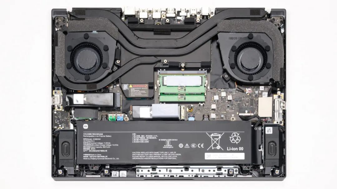 上图是红米Redmi G Pro的拆机实拍图,3热管双风扇加VC均热板的组合,其中CPU采用液金导热,相比上一代Redmi G Pro在规格上有很大提升。