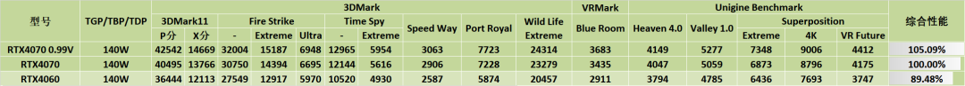 上图是2024年RTX4070独显性能图,需要注意的是今天这款暗影骑士·龙是2023年的型号,所以图形性能会有约6%的差距。