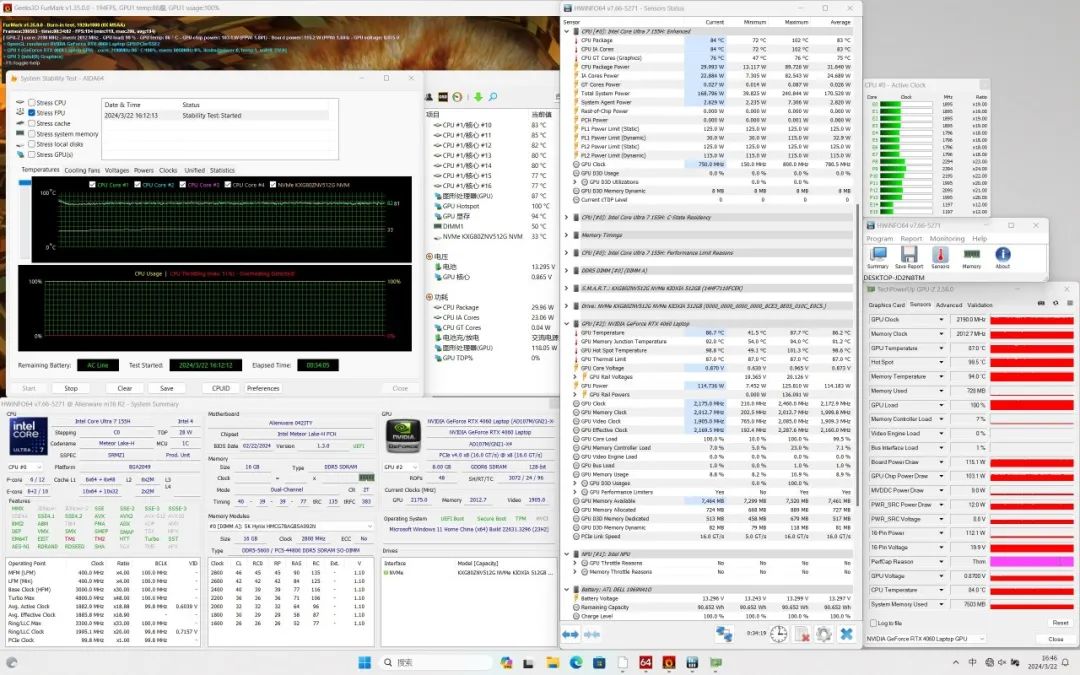 总的来说,ALIENWARE m16 R2 青春版的散热表现一般,核心总功耗165W,在同尺寸游戏本中属于较差的水平,风扇噪音达到了惊人的62.1dB,键盘也有明显热感,可以看出这款游戏本的散热设计已经落后于时代了。