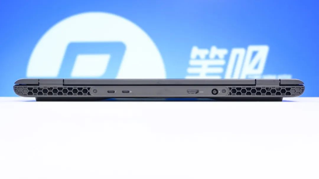 机身后侧依次为雷电4(支持100W PD充电与DP1.4核显视频输出)、USB-C 10Gbps(支持DP1.4独显视频输出)、HDMI2.1(独显输出)和电源接口。
