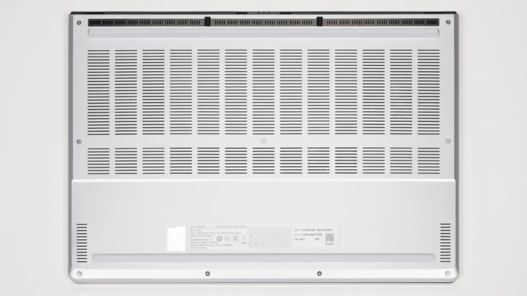 这台笔记本电脑拆机不难,卸下底面所有螺丝即可取下后盖,注意有两颗螺丝隐藏在脚垫后方的橡胶垫中。