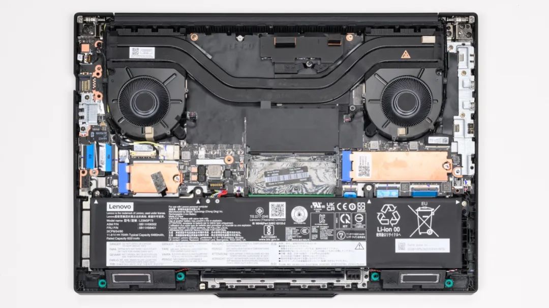 上图是ThinkPad T14p AI 2024的拆机实拍图,双风扇双热管的组合。