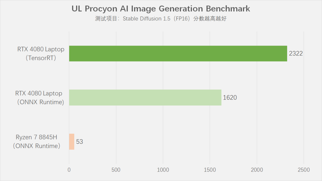 而在ULSolutions(推出了3DMark被人熟知)推出了UL Procyon AI Image Generation Benchmark后,我们终于可以在一个相对公平的赛道上对比各家的AI性能了。