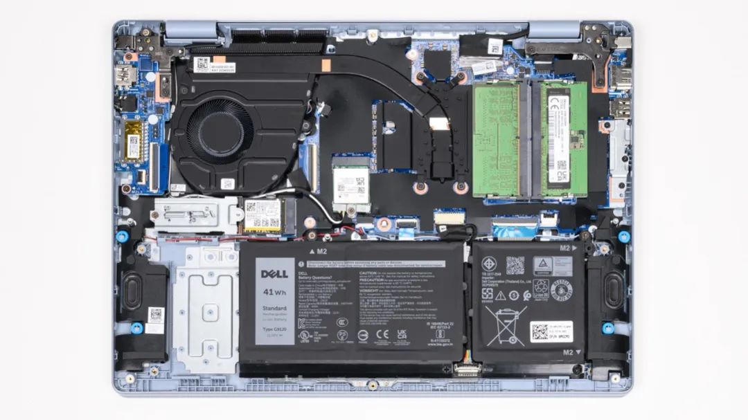 上图是戴尔 灵越14 灵龙的拆机实拍图,单风扇单热管的组合。