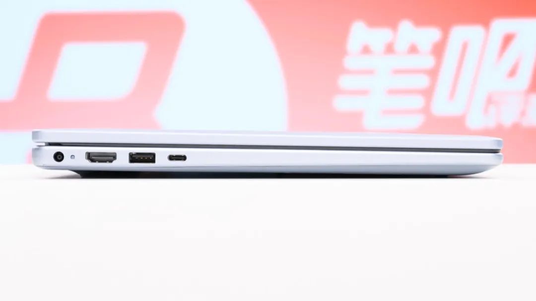 接口方面,机身左侧依次为电源接口、HDMI2.0、USB-A 10Gbps、USB-C 10Gbps(支持PD充电与视频输出);