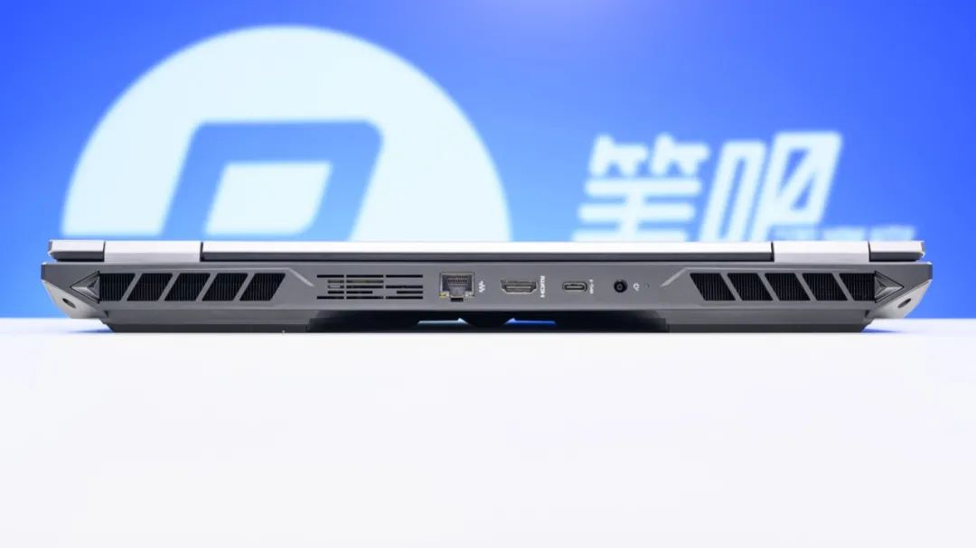 机身后侧有USB-C 10Gbps(支持100WPD充电和DP1.4独显视频输出)、HDMI2.1接口(独显输出)、RJ45网线接口和电源接口。