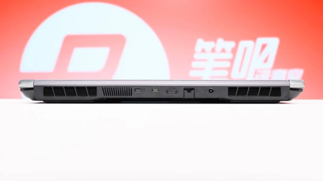机身后侧依次为电源接口、RJ45网口、HDMI2.1(独显输出)、USB-C 10Gbps(仅支持数据传输)、MiniDP1.4接口(独显输出)。