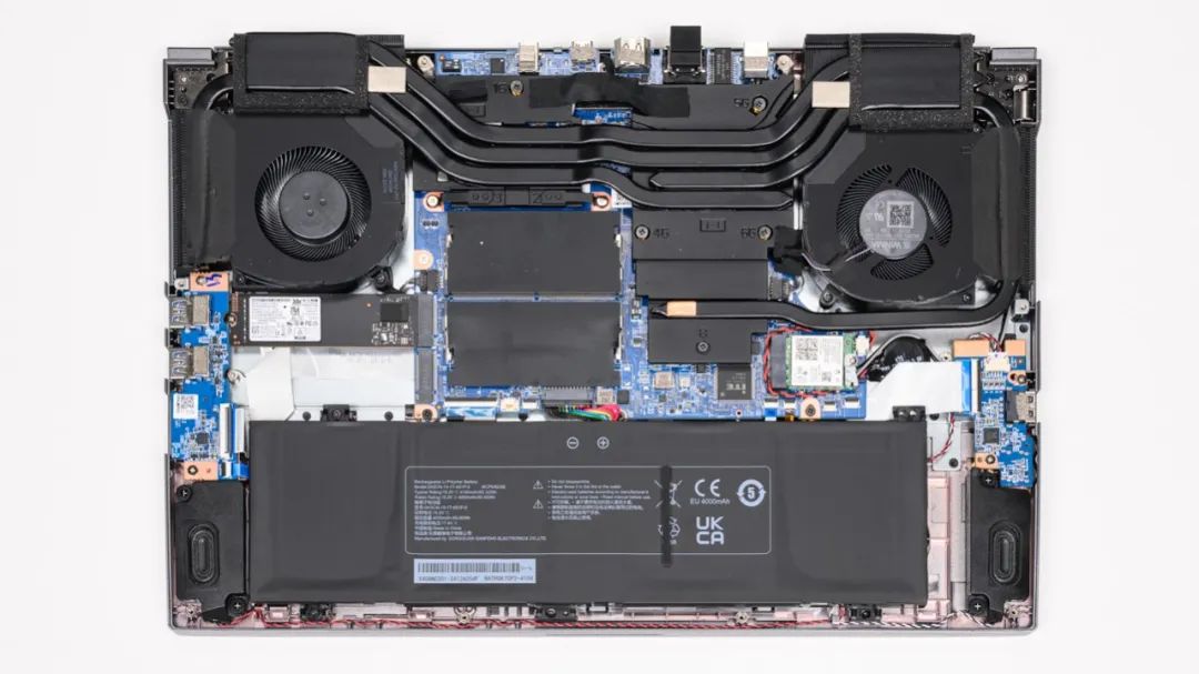 上图是机械革命 蛟龙15Pro的拆机实拍图,五热管双风扇的组合。