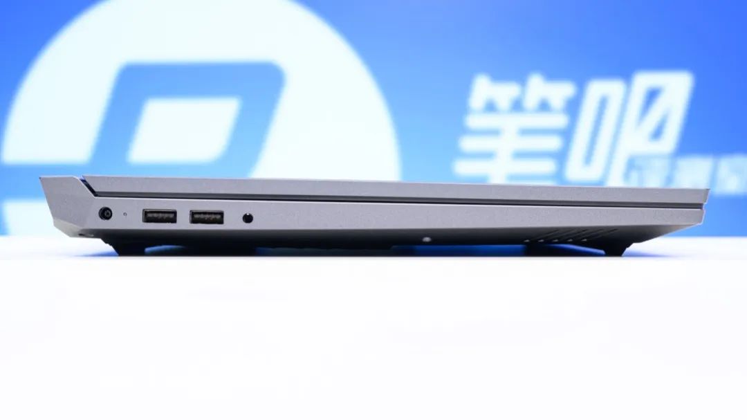 接口方面,机身左侧依次为电源接口、两个USB-A 5Gbps、3.5mm音频接口;